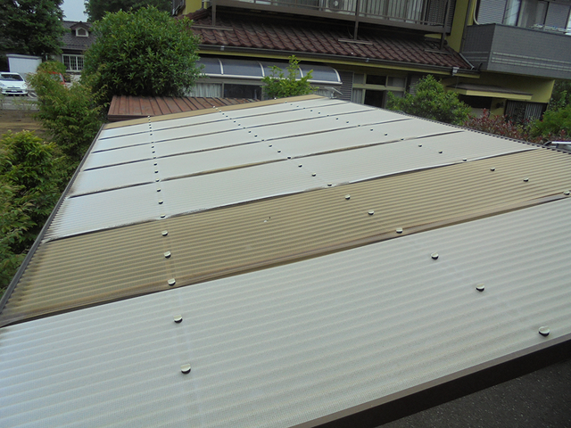 武蔵野市にて、アパートの駐車場の屋根として設置していた波板を交換した事例です。